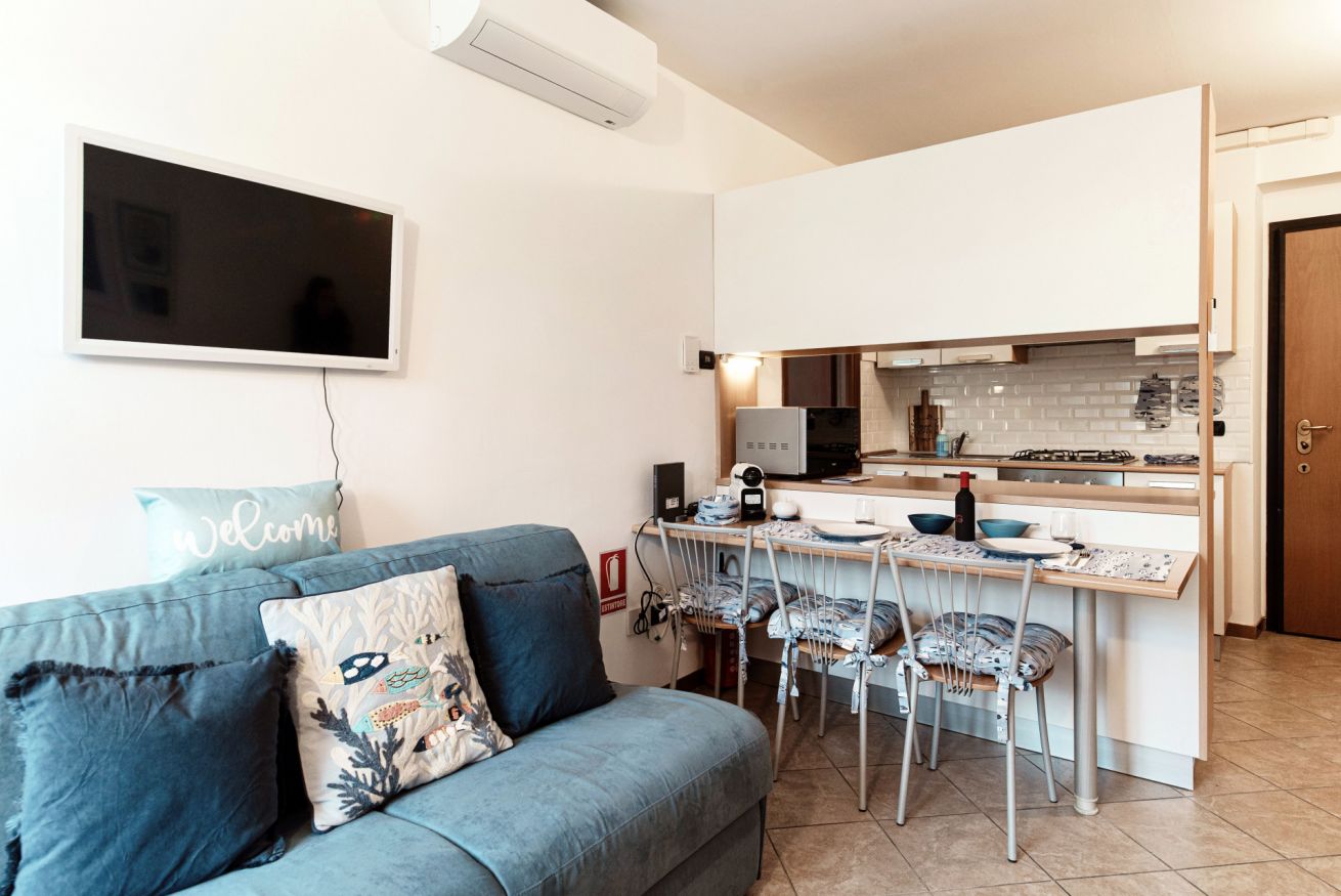 - 👥 Divano letto matrimoniale nel soggiorno per ospitare comodamente altri due ospiti.